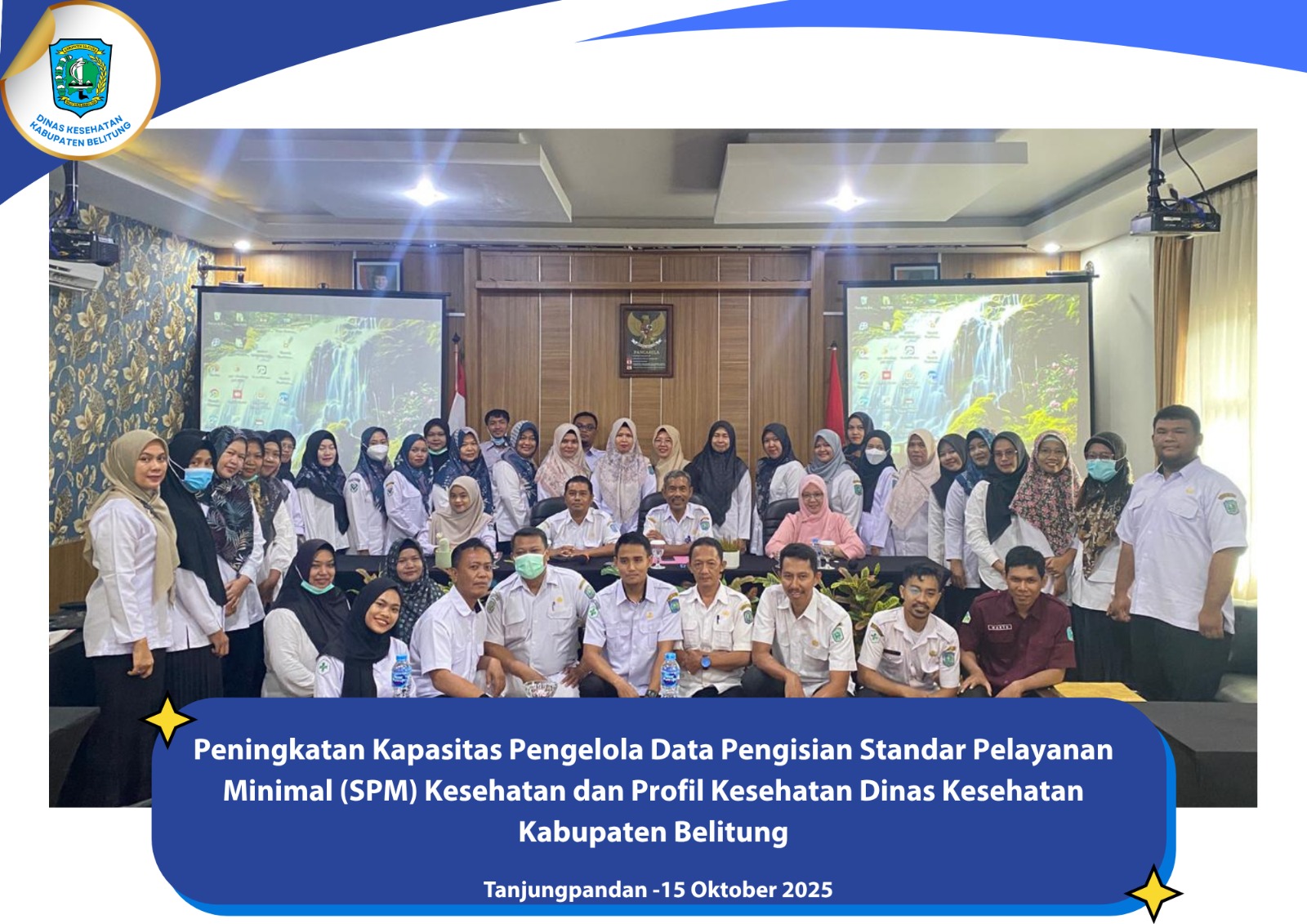 Tanjungpandan-Rabu, 15 Oktober 2025. Dinas Kesehatan Kabupaten Belitung mengadakan kegiatan Pertemuan Peningkatan Kapasitas Pengelola Data Pengisian Standar Pelayanan Minimal (SPM) Kesehatan dan Profil Kesehatan di Hotel Green Tropical Belitung.
