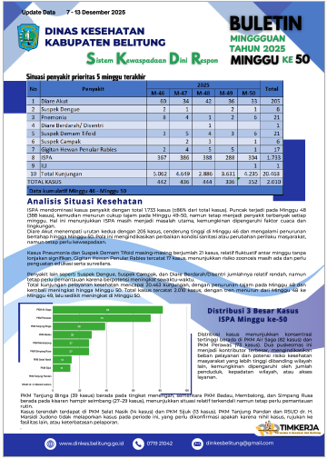 Buletin ini disusun oleh Dinas Kesehatan Kabupaten Belitung sebagai acuan deteksi dini dan respon cepat di seluruh Indonesia.